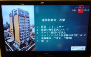 2025.12.08有料老人ホーム 運営懇談会 先日、有料老人ホームの運営懇談会を開催し施設の運営状況やサービス提供の状況等をみなさまにご報告いたしました。 お集まりいただき、ありがとうございました。 一覧ページに戻る